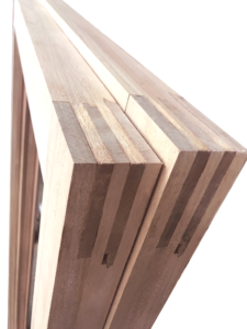 Laminated timber guarantees superior performance and durability compared with solid blocks. We typically offer high quality laminated meranti +450 kg/m³ as a basis.